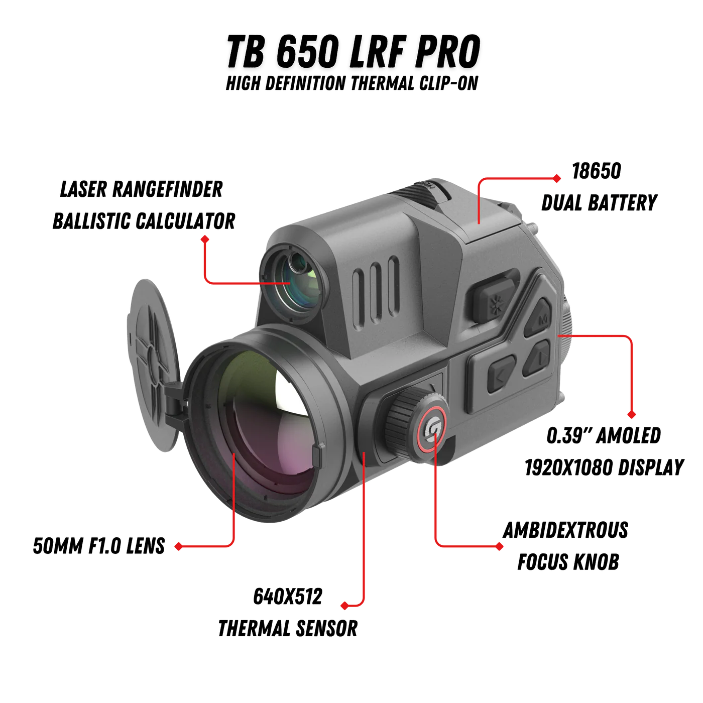 TB650 LRF PRO - Thermal Clip-On 640X512 50mm 18mK Laser Rangefinder